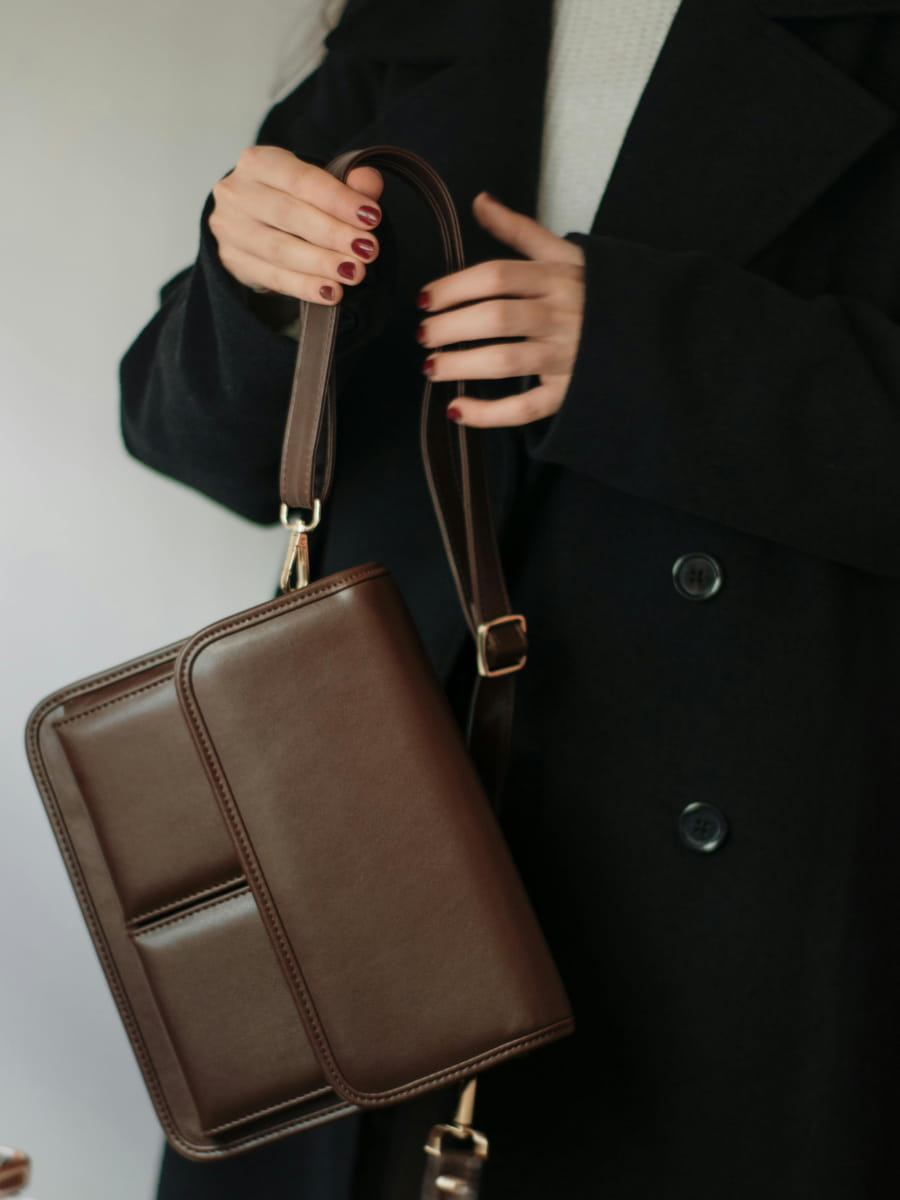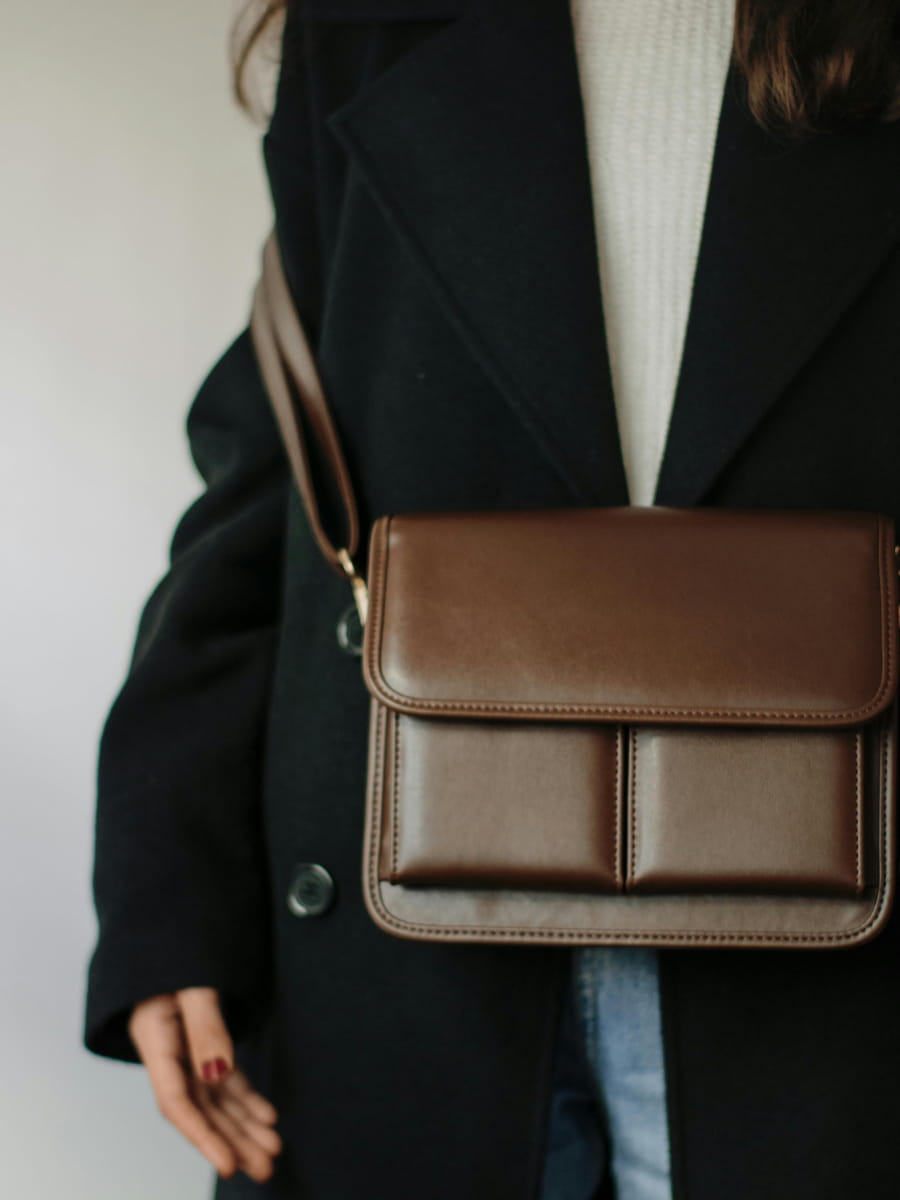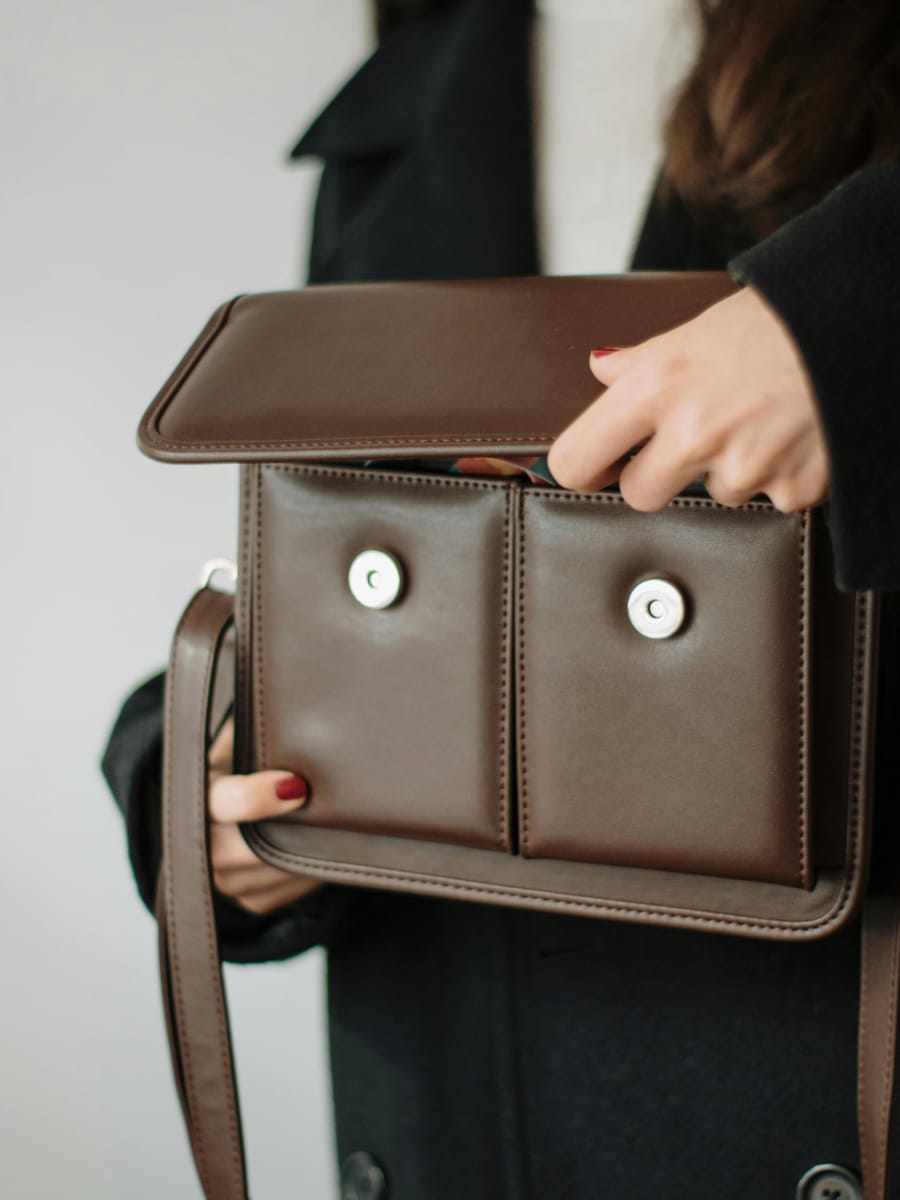 Cross-body bag with flap. Removable and adjustable straps, one canvas shoulder strap and one cross-body strap. Magnetic fastening.