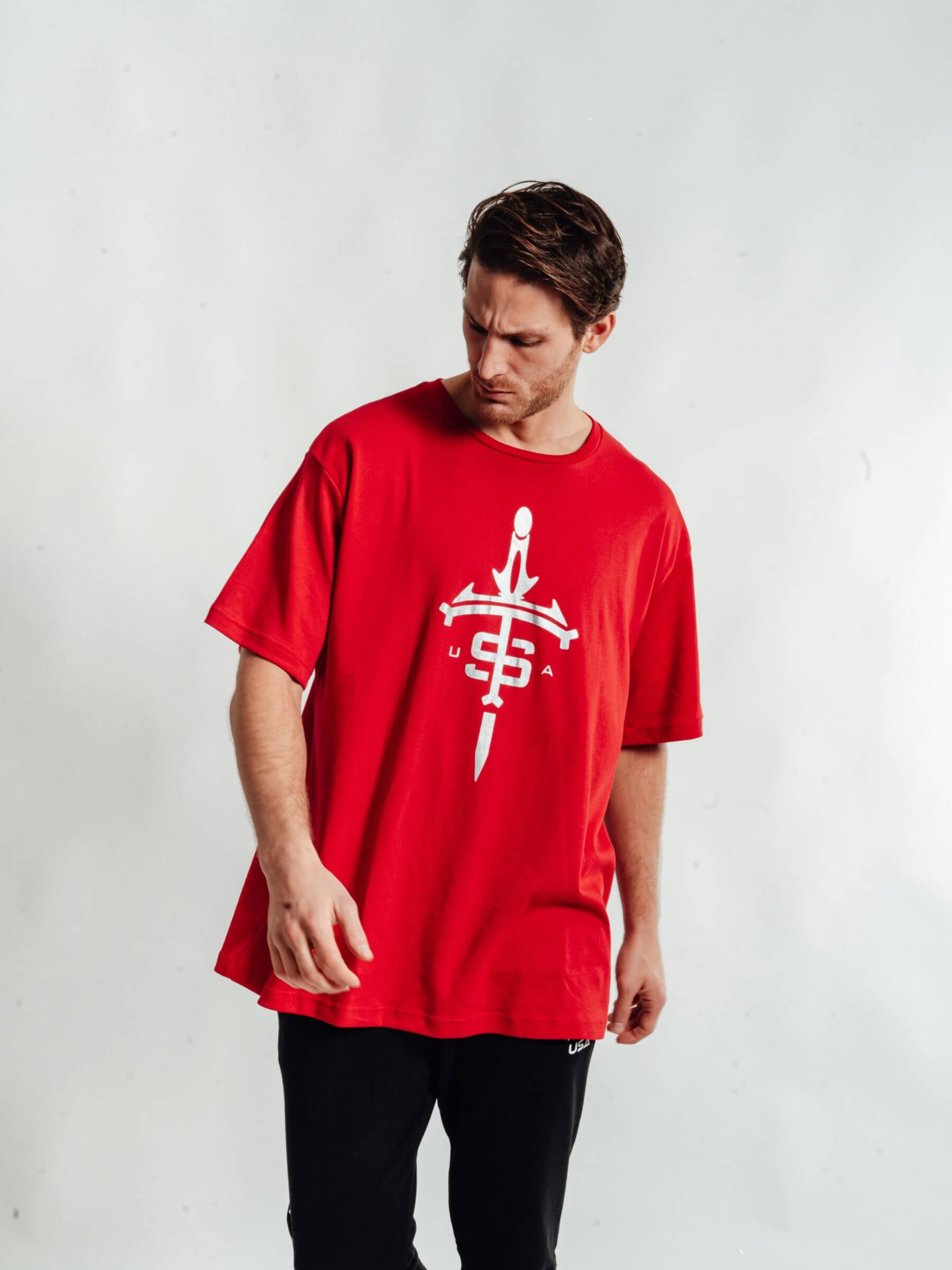 Contrast-trim crew neck. Embossed symbol on the chest.