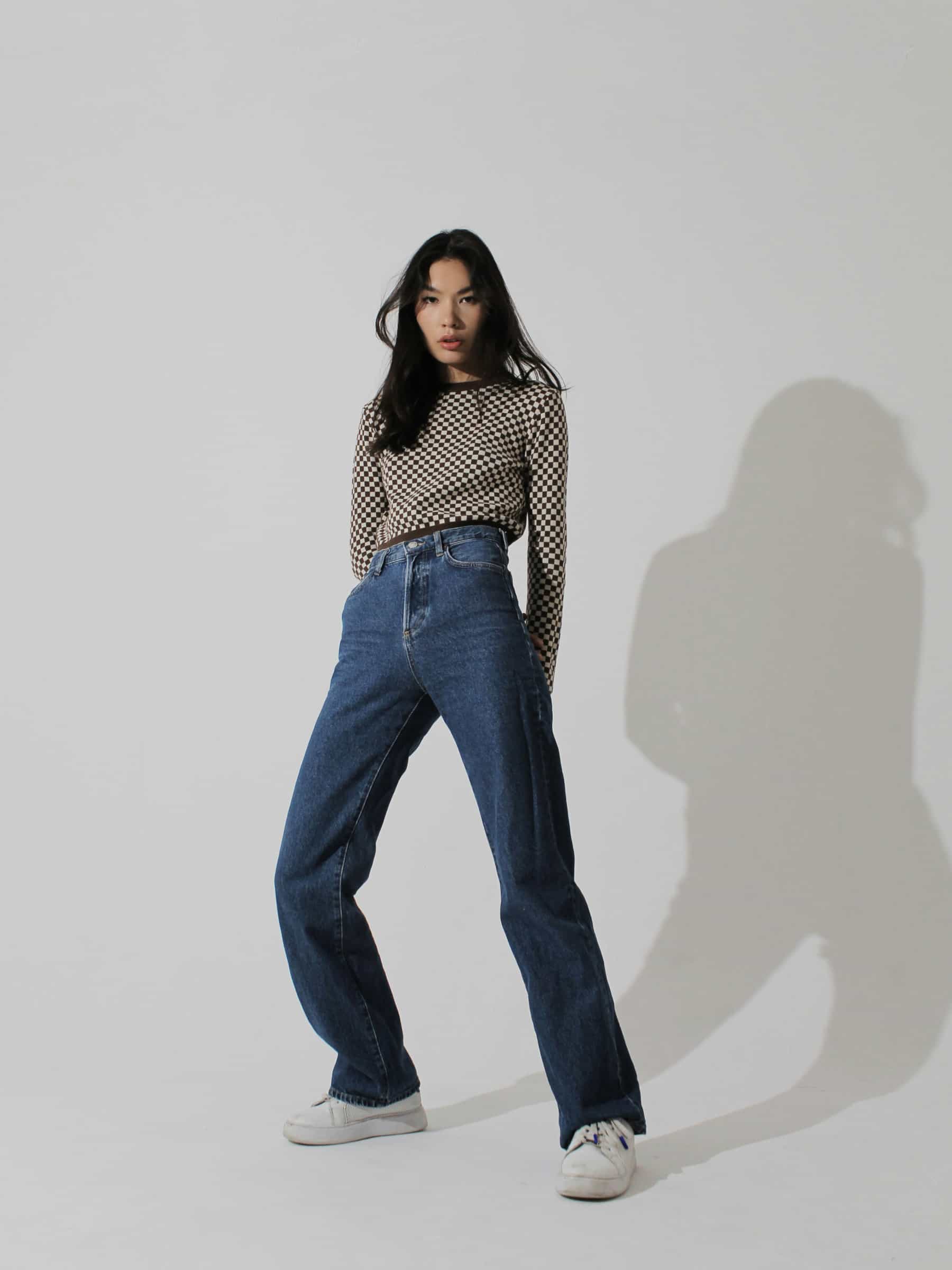 Round neck sweater with long sleeves.